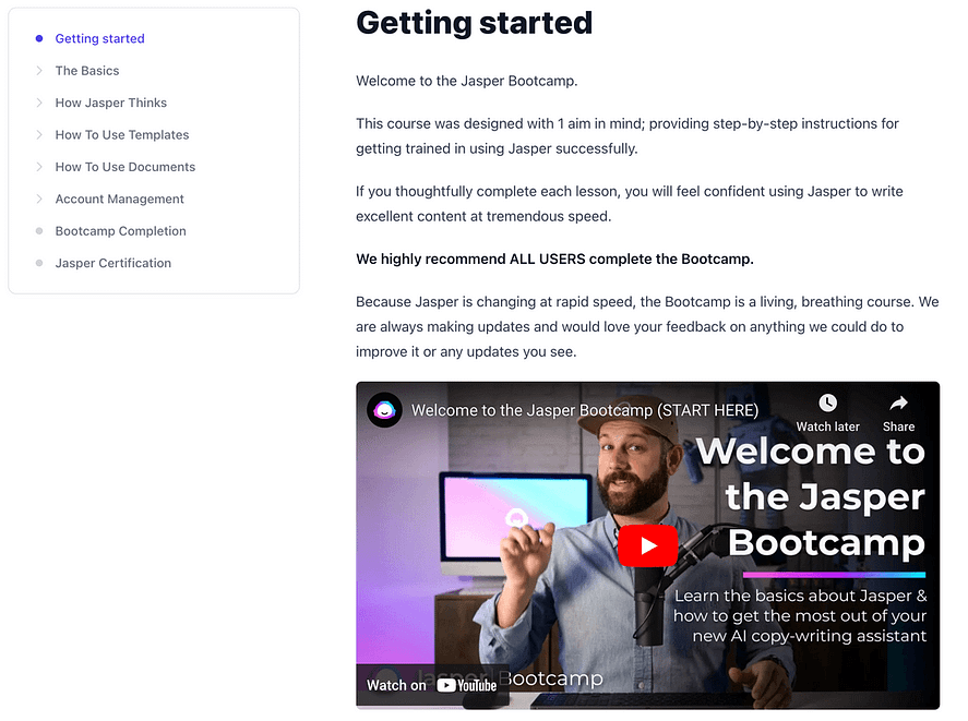 Jasper.AI also has step-by-step tutorials to follow to better optimize and streamline your workflow. We understand that learning new software is daunting. You do not want to be spending a week trying to figure out an application works, what is the point? Follow the simple videos and your clients will be in awe at how fast you’re churning through content.